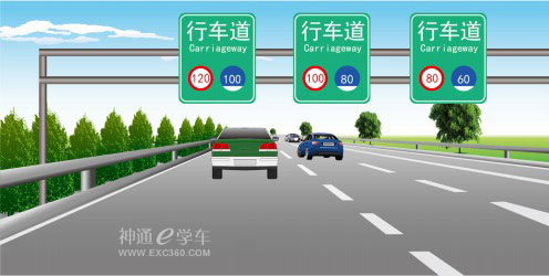| 如图所示,在同向三车道高速公路上行车,车速每小时115公里应在哪条行车道上行驶? | |||||||||