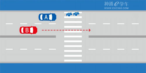 如图所示,当越过停在人行横道前的A车时,B车应减速,准备停车让行。 | |||||