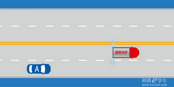 | 如图所示,驾驶过程中遇到这种情况时,A车可以长鸣喇叭提醒道路养护车辆暂停喷水。 | |||||