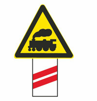 | 如图所示,在这种情况下遇到红灯交替闪烁时,要尽快通过道口。 | |||||