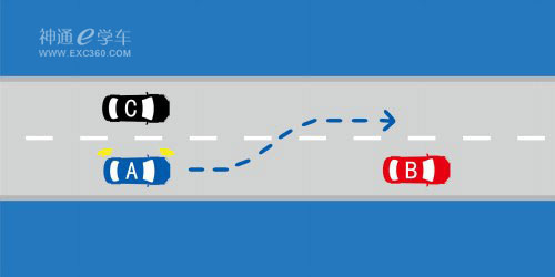 | 如图所示,在这种情况下,A车可以向左变更车道。 | |||||