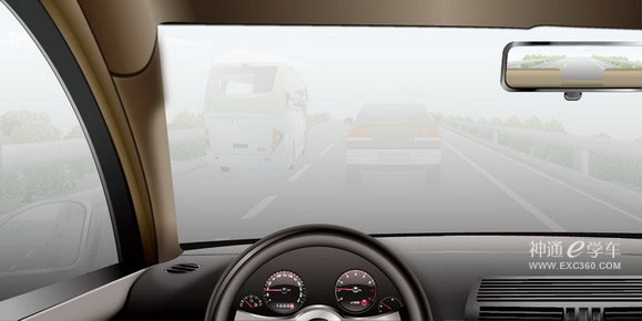 | 如图所示,雾天驾驶机动车跟车行驶,应加大与前车的距离。 | |||||